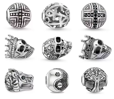 Chaque perle révèle un univers à part entière — crânes couronnés, symboles mystiques, croix, arbre de vie, yin & yang… autant d’éléments forts pour composer des bijoux uniques, chargés de sens et d’intensité.
