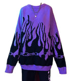 Der Flammenstrickpullover ist aus hochwertigem Strick gefertigt, mit einer Silhouette aus Feuer und Ketten, die in den Pullover eingestrickt sind.