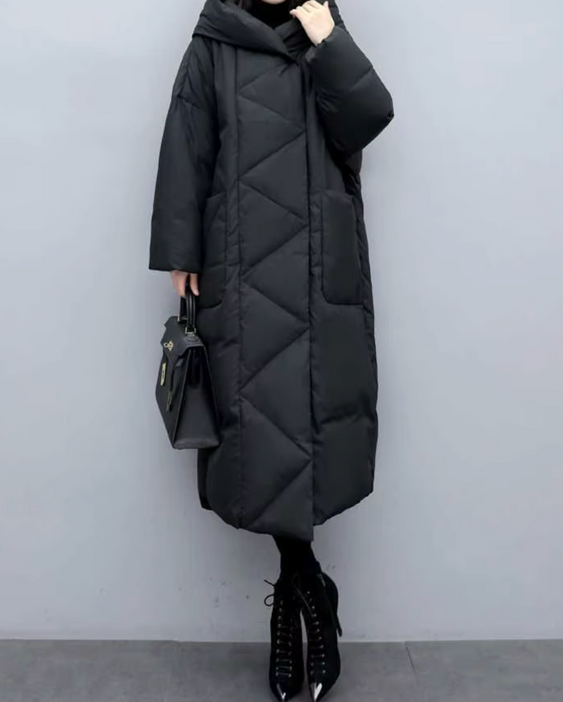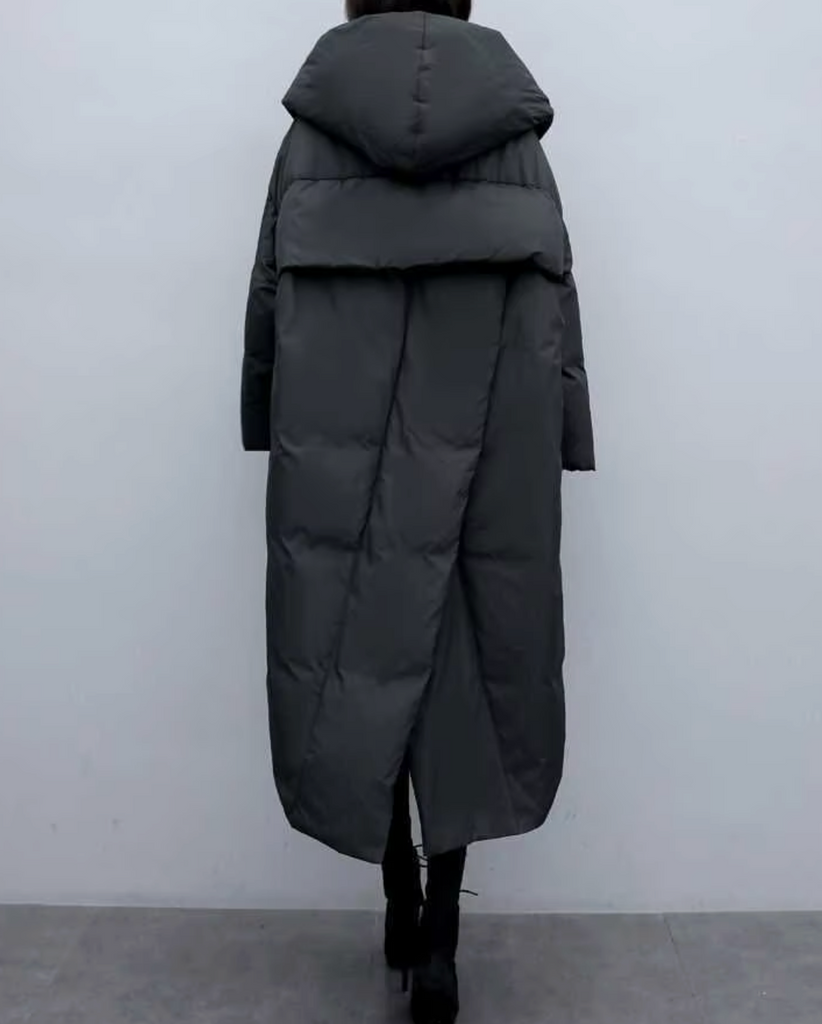 Affrontez l’hiver avec style grâce à la doudoune "Umbra Mortis". Longue et enveloppante, elle vous protège des vents glacés tout en vous donnant une silhouette mystérieuse et imposante. Sa coupe oversize et son design matelassé géométrique apportent une allure moderne et dark, idéale pour celles et ceux qui aiment conjuguer confort et esthétique sombre.