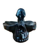 Alliez fonctionnalité et style macabre avec ce support à lunettes en forme de crâne. Sculpté dans une résine de qualité, cet accessoire unique offre un espace de rangement original pour vos lunettes tout en décorant subtilement votre intérieur dans une ambiance gothique, rock ou vintage.