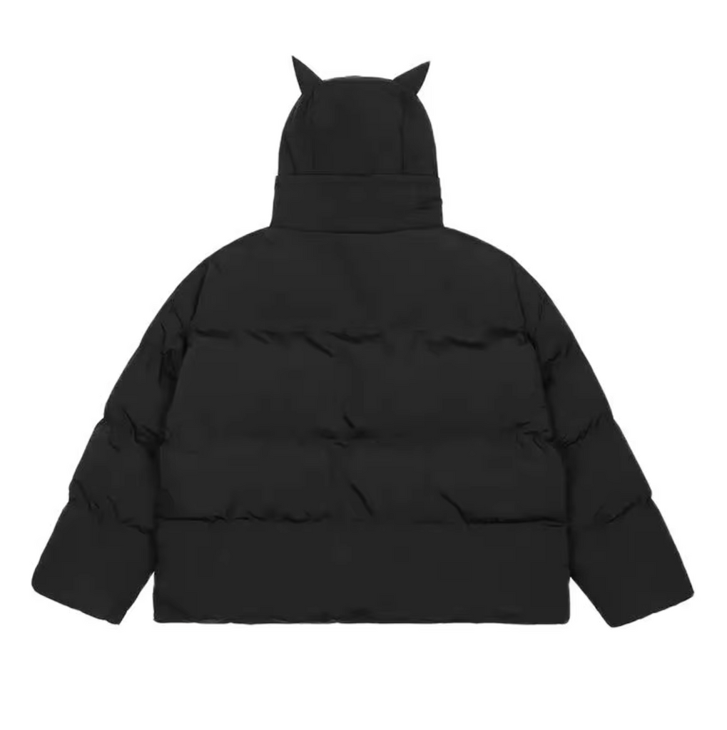 La doudoune gothique « Demon Winter » est une pièce incontournable pour affronter le froid avec style. Sa coupe oversize et son rembourrage chaud vous garantissent confort et protection, tandis que sa capuche ornée de petites cornes apporte une touche espiègle et rebelle à votre look.